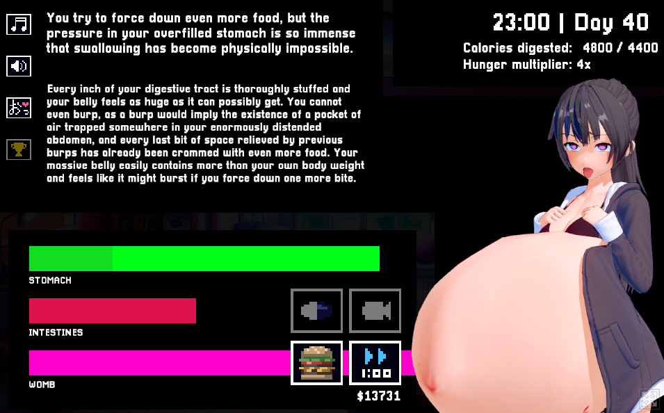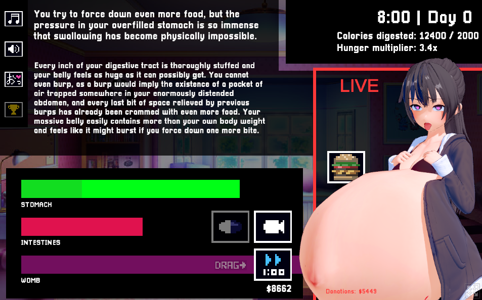 Today I also released the mukbang stream content along with the medicine menu! The exact values are always up for rebalancing, but I don't think they're too far off the mark. Note that making money from streaming may be difficult when carrying late-term triplets since there isn't much room for your tummy to grow. Consider this a design choice for now.